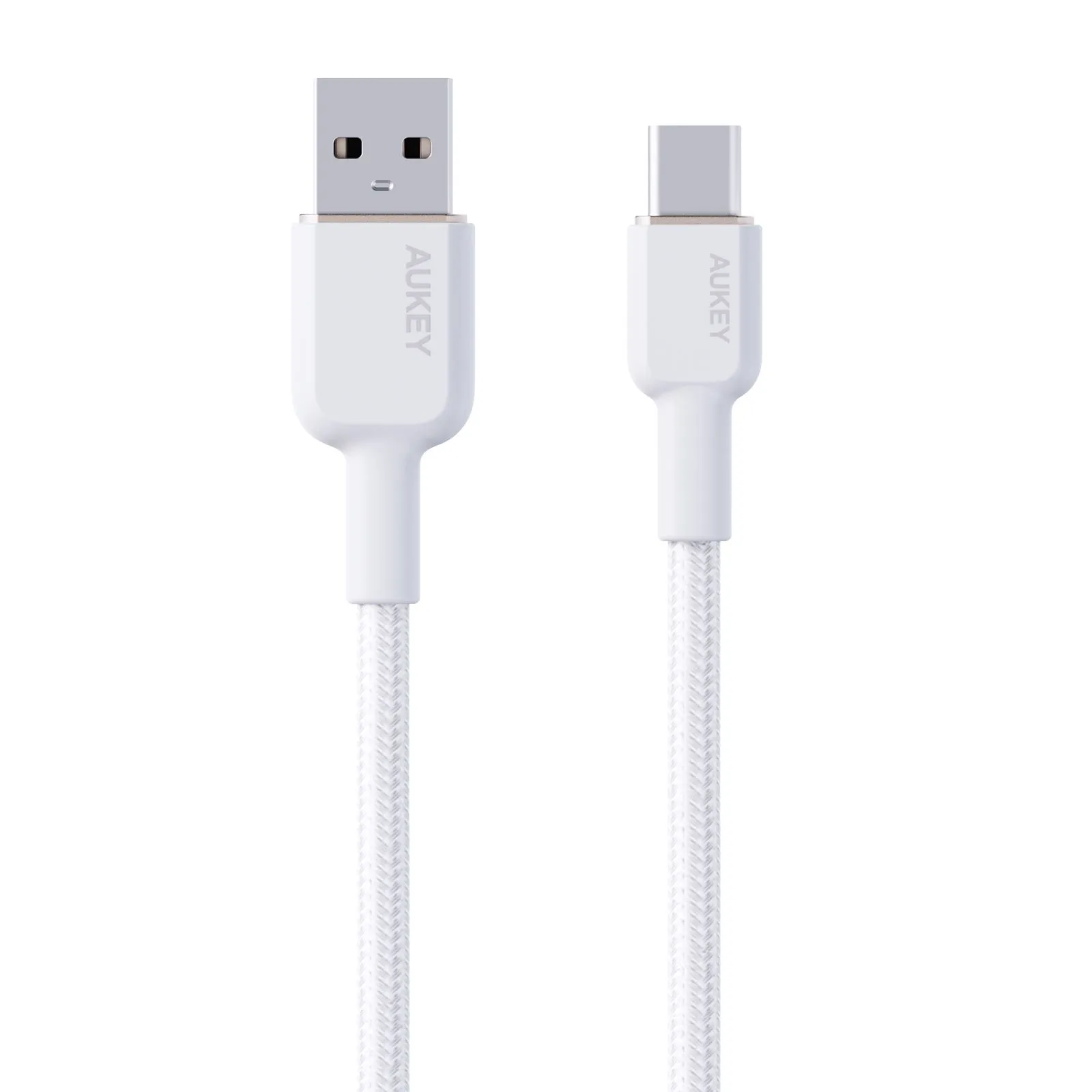 AUKEY 60W Nylon Braided USB-A to USB-C Cable – White