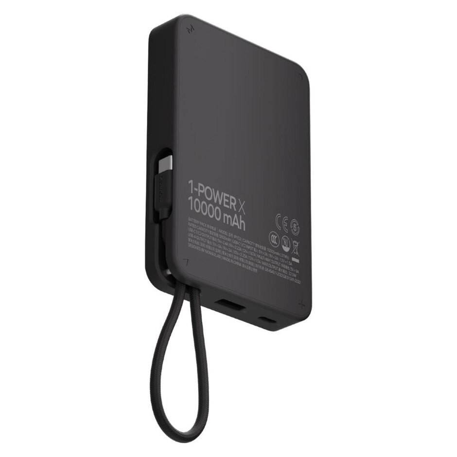 momax 1 -Power X 10000mAh Battery Pack with Built-in USB-C Cable – IP152D – Black